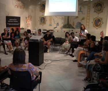 Las personas que asistieron se unieron a los grupos de acuerdo a sus intereses. Los participantes acudieron más a los grupos en este orden de casos de mayor a menor: proyectos culturales, gastronomía, música y museos. En cada grupo, dinamizado por integrantes de la asociación sevilla negra y la colaboradora Zareli Gamarra, se dieron debates en los que aplicaron los conceptos teóricos que se expusieron en la conferencia inicial. Algunos grupos mostraban más disposición de deconstrucción en torno a la aplicación de los conceptos.