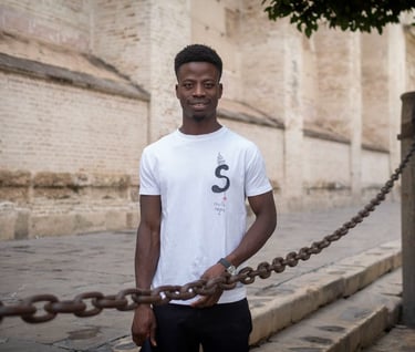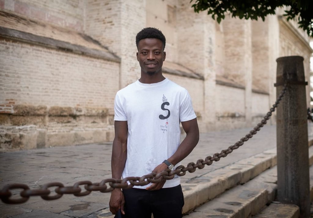 Hassan Sall imagina placas conmemorativas en el aire. A sus 24 años, este vitalista emprendedor de Guinea-Conakry pasea por Sevilla con una mirada que radiografía el invisibilizado pasado esclavista de la ciudad. Del siglo XIV al XIX la capital andaluza llegó a registrar hasta un 14% de población negra esclavizada y fue conocida como “el tablero de ajedrez”